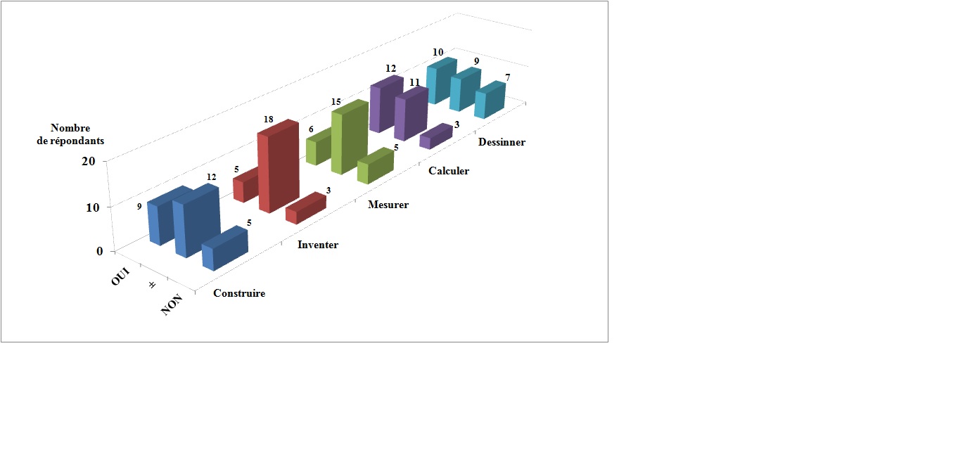 Fig. 3. Le graphique à barres représente le nombre d’élèves intéressés par certaines activités pratiques ou intellectuelles.