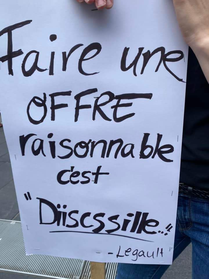 Nous étions 100 000 dans les rues de Montréal, le 23 septembre dernier, pour avertir le gouvernement de ce qui nous attend collectivement si les discussions continuent de tourner en rond. Nous étions 100 000 à marcher par un beau samedi pour signifier notre opposition à la ridicule proposition d’augmentation salariale de 9% sur 5 ans du gouvernement Legault, pour souligner que le système public a plus que jamais besoin qu’on en prenne soin. Nous étions 100 000 pour rappeler que, bientôt, nous serons 420 000 en grève et que 420 000 travailleuses et travailleurs qui ne travaillent pas, ça t’enlève l’impression d’être en contrôle sur un moyen temps.